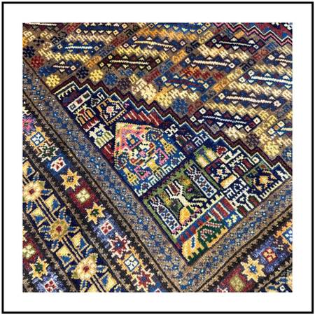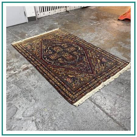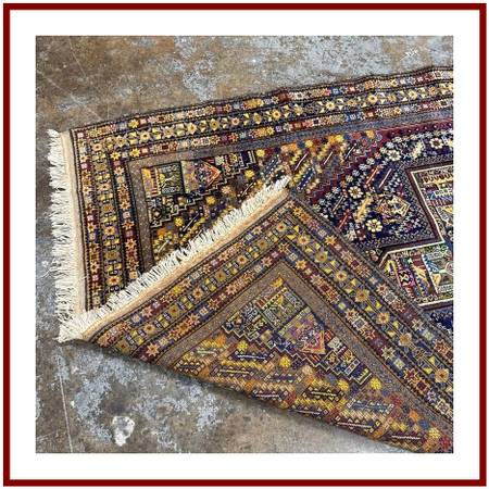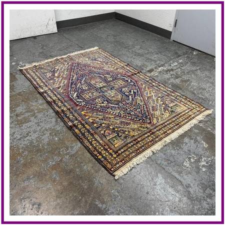 Design Plus Gallery presents 4ft 6in 7ft2in Turkish Wool Area Rug. This striking piece features intricate, traditional patterns woven in rich, dark multitoned hues, deep grays and blacks intertwine with muted yellows and sophisticated bursts of burnt, earthy colors. Finished with classic white fringe along the short ends, this rug beautifully melds oldworld artistry with modern color sensibilitiesperfect for anchoring a living room, bedroom. In good condition, visible and minimal wear from usage.