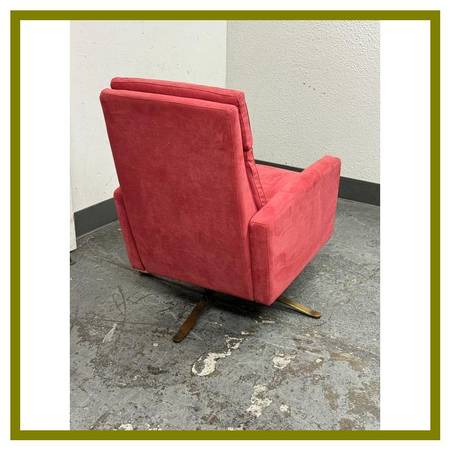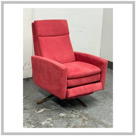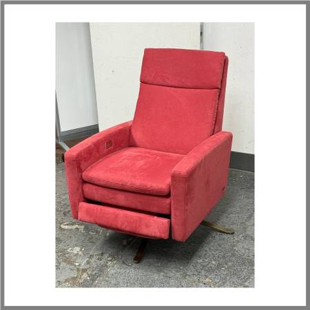 Design Plus Gallery presents a Simone Electric Recliner from American Leather. An electric recliner that reimagines a classic library chair with modern ease. Upholstered in a rich red fabric, Simon pairs tailored lines with indulgent comfort, thanks to downfilled pillow tops that soften the headrest, seat, and back. A stunning Burnished Bronze swivel base anchors the design, adding sculptural elegance and smooth, effortless movement. Just as functional as it is beautiful, Simon features whisperquiet power that lets you recline in one simple motion at the touch of a buttonperfect for settling in with a book or unwinding at the end of the day. In good condition, visible and minimal wear from usage. Made in USA.