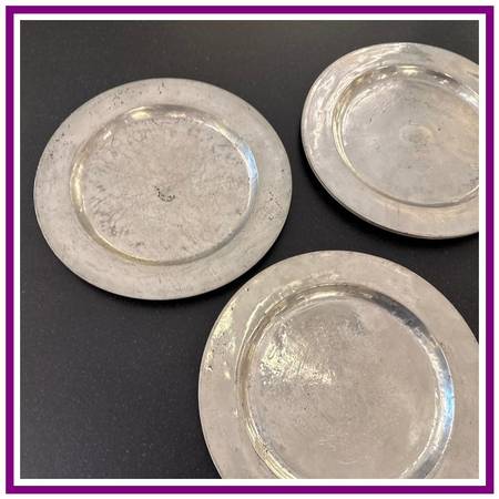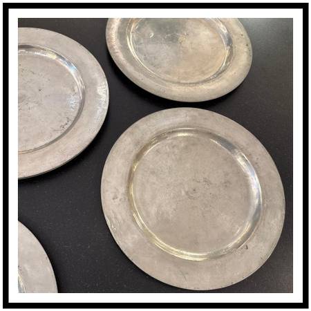 Antique Ergarte Porto Portuguese Pewter Plates, Set of Five
