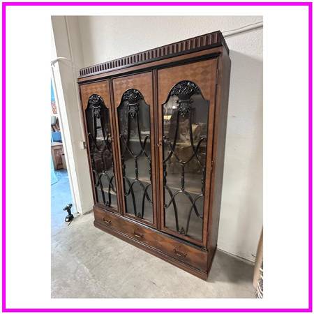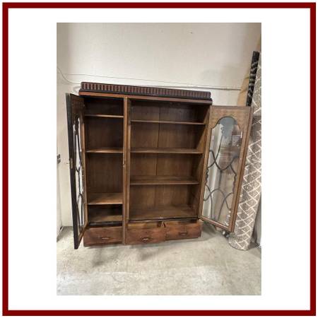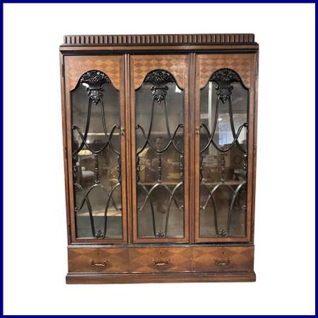 Antique Victorian Three Door Storage Glass + Wood Cabinet