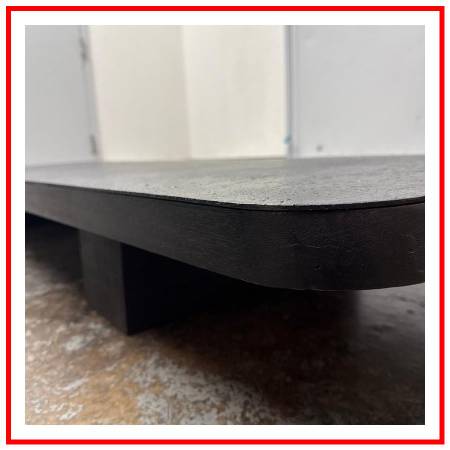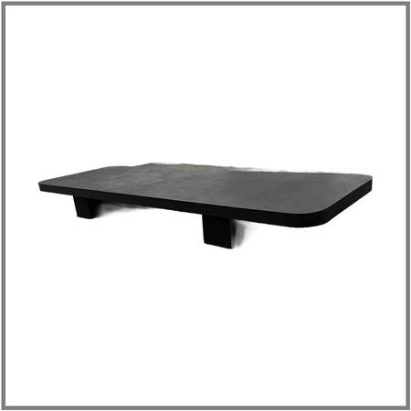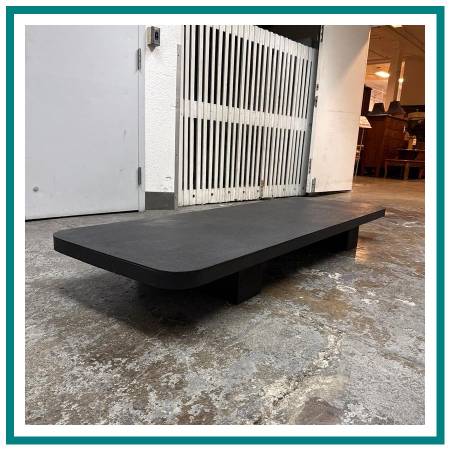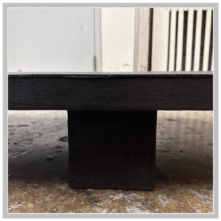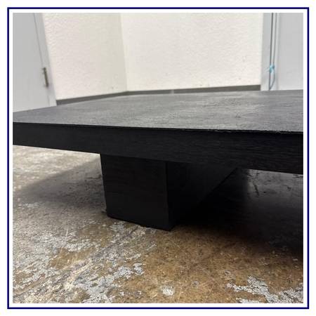 Design Plus Gallery presents the Black Top Coffee Table by Arno Declercq for STUDIOTWENTYSEVEN. The table has a simple, modern design with a rectangular top and two thick, wood block supports underneath. It has a minimalist aesthetic that is associated with contemporary or even Japanese decor. It is in good condition for its usage.