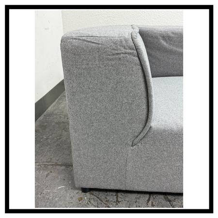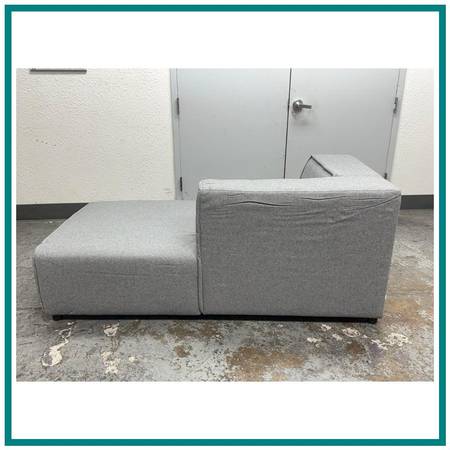 Design Plus Gallery presents the Right Side Chaise Lounger from Bo Concept. The cubic Danish design expression of their signature Carmo series is updated for a more refined look and enhanced comfort. Its freestanding design will effortlessly adapts to your needs. In a their neutral Light Gray Frisco fabric. In good condition, visible and minimal surface wear for their overall age + use.