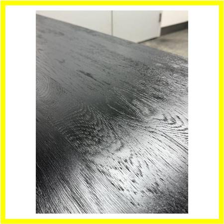 Design Plus Gallery presents a Modern Natural Wood Console Table from Bobo Intriguing Objects. Derived from the French term bourgeois bohemian, Bobo Intriguing Objects uncovers and reinterprets timeless designs. This table draws references from styles as diverse as art deco, midcentury, vintage and modern, and is directly inspired by antiques. On top of that it was meticulously crafted to complement a contemporary aesthetic. This elongated rectangular console table is two toned with the solid wood top given a black stain that boldly contrasts its raw + natural, tapered pedestal base.. For symmetry the base of the console is also black and eye catching. Its mixed materials and geometric form allow it to pair easily with contemporary, industrial, or minimalist interiors while remaining visually distinctive without overpowering a space. In good condition, visible and minimal wear from usage. Made in USA.