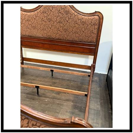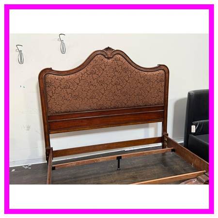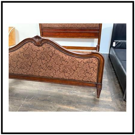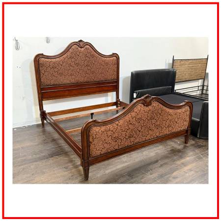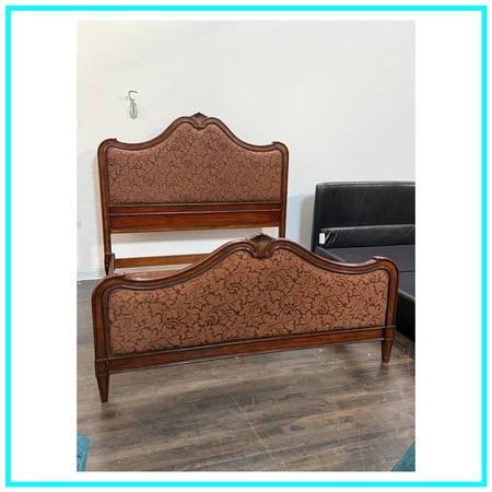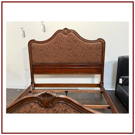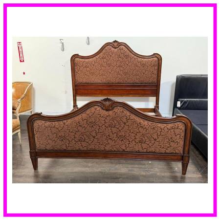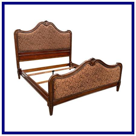 California King Bernhardt French Louis XV Style Wood + Fabric Bed Frame