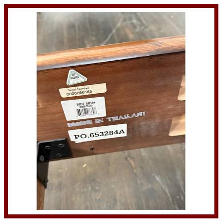 Design Plus Gallery presents a California Size Bed Frame by Bernhardt Furniture. Experience regal comfort and timeless elegance. Masterfully crafted in the French Louis XV style. Constructed from solid woods and finished in a rich mahogany stain. Both the stately headboard and graceful footboard are upholstered in a burgundy fabric, featuring a leaf print that adds texture and warmth to the design. This is a discontinued model. In good condition, visible and minimal wear. Made in Thailand.