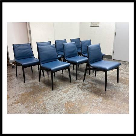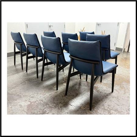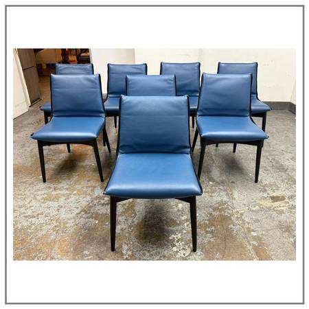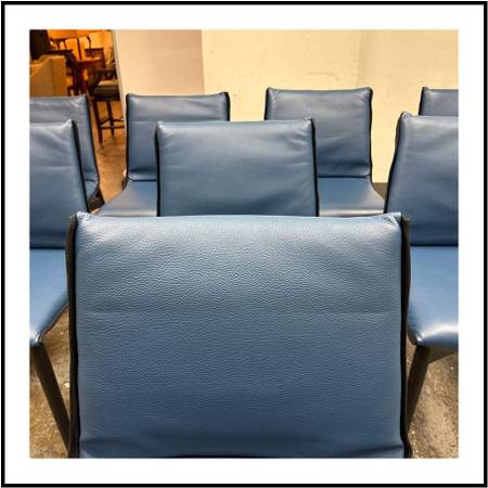 Carl Hansen & Søn Embrace Collection Blue Leather Dining Chairs, Set of Eight. Original Price: $26,800