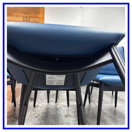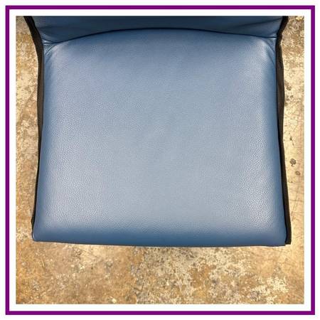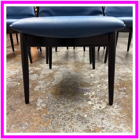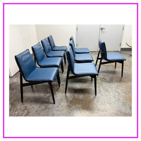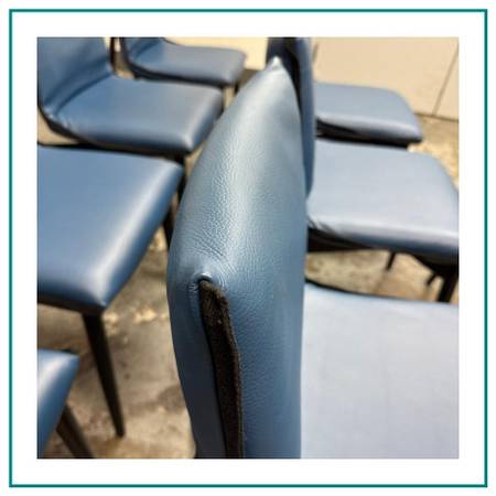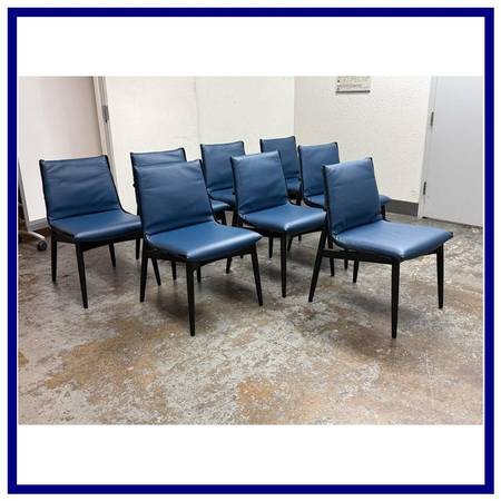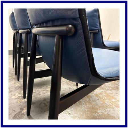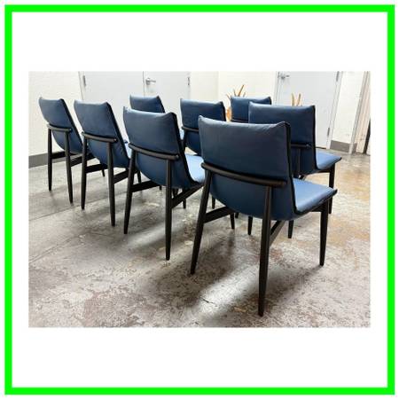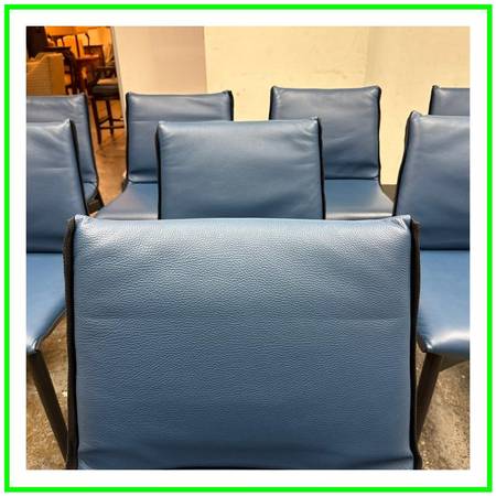 Carl Hansen & Søn Embrace Collection Blue Leather Dining Chairs, Set of Eight. Original Price: $26,800