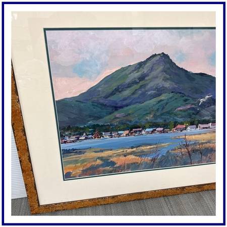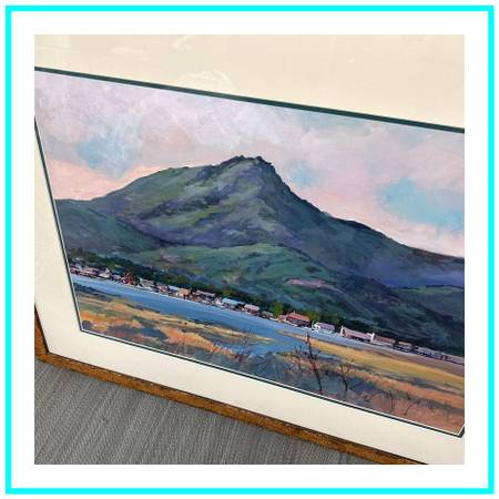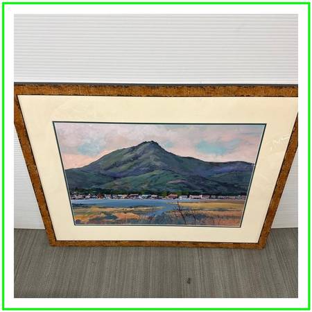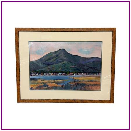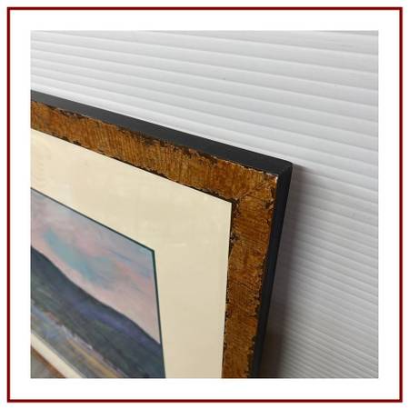 Design Plus Gallery presents an Original Artwork of California Hillside by Geri Keary. This is a beautiful original painting by contemporary California impressionist Geri Keary, circa 1990s. The painting is acrylic on paper and is signed lower right. The rolling hillside has a breathtaking tones of colors that are naturally occurring in nature. The painting is encased in a freshly matted, along with plexiglass and wood framing.
