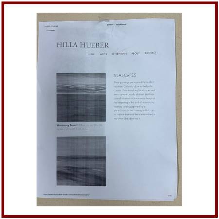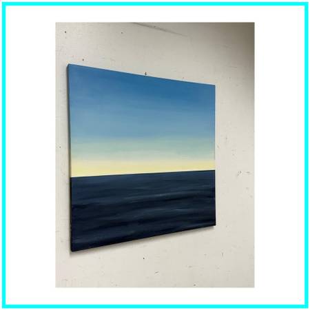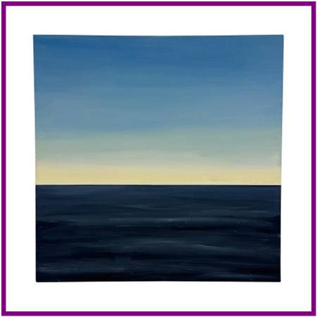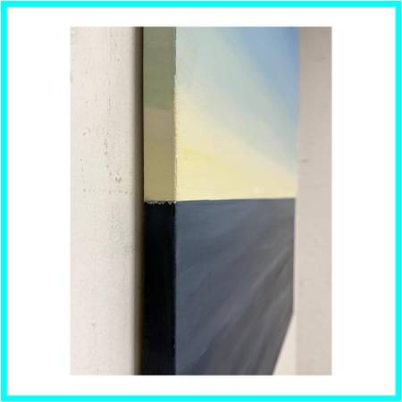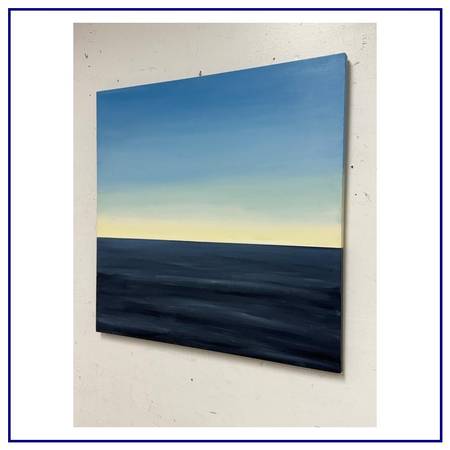 Design Plus Gallery presents Summer Morning, an Original Oil Painting from Artist Hilla Hueber, signed and dated 2010. The painting was part of her Seascapes series inspired by her life in Northern California close to the Pacific Ocean. Even though her landscapes and seascapes are mostly abstract paintings, careful observation in nature is always at the beginning. In the studio the artist conjures up a memory, rarely supported by a photograph. As the painting unfolds, she then captures the mood the scene evoked in me when I first observed it. This original piece is signed on the frame, beneath the stretched canvas. It is in good condition with minimal signs of visible wear.