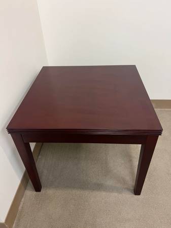 (1) Used Haworth Collaborate Ellipse 24W x 24D x 18H square end table with round corner in walnut wood & 4 star polished aluminum base $295