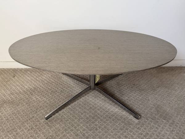(1) Used Haworth Collaborate Ellipse 40W x 26 x 16H oval shaped coffee table in walnut wood & 4 star polished aluminum base $495