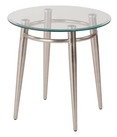 Brooklyn WS-MG0920R-NB 20"D x 20"H clear tempered glass round top end table with nickel brush legs $255 New In Box Or $310 Assembled / Floor Sample