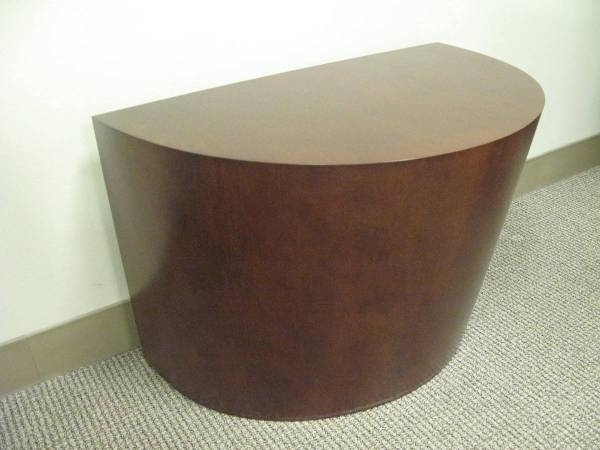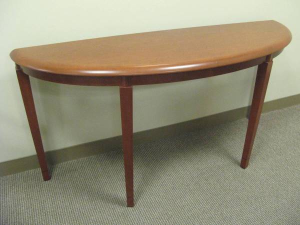 (1) Used Brayton 25"W x 16"D x 17"H D shaped reception end table in cherry wood $95