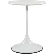 Worksmart OSP-WS-FLWA9300 17.75D x 22.25H round matte white laminate end table with white base. $225 new in box / $250 floor sample / assembled (Also available in brushed metal base & brass base for additional