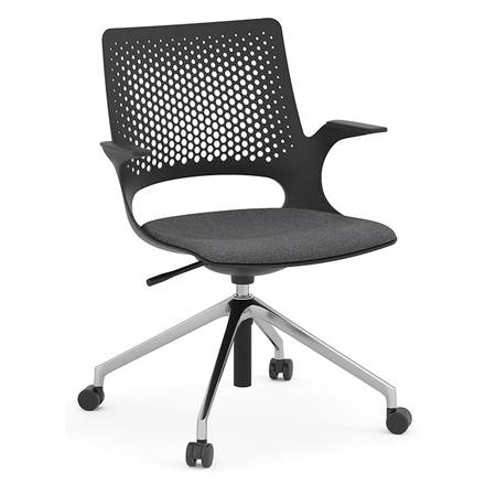 (6) Used SitOnIt Novo # 1033BK2F-E3 high mesh back chair with pneumatic seat height adjustment, standard synchro tilt with tilt lock, seat depth adjustment, adjustable lumbar support & height adjustable black arms & black base. Fog (Grey) mesh back & dark grey fabric seat. $225