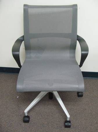 (1) Used Herman Miller Setu Chairs CQ51MA With Pneumatic Seat Height Adjustment, Standard Height Range, 4W26 Slate Grey Lyris 2 Suspension Seat & Back. Ribbon Arms. Slate Grey Frame & Arms. Silver Alloy Base $200 - $250 depending on condition