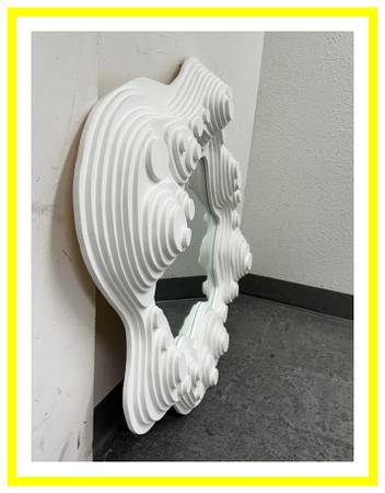Design Plus Gallery presents a White Gecko Topological Plateau Wall Mirror from Downtown Furniture. The store and gallery, located in Los Angeles, is noted for fearless color combinations and the mix of distinctive 20th Century Design, Downtown has become a destination for designers in search for fresh ideas. The Downtown Classics Collection focuses on unexpected designs of original and reproduction furniture, lighting, and mirrors feature many of the distinct finishes and the bold approach that has become a trademark. The white gecko wall mirror is a reflection of that collection, literally and figuratively. Is in good condition with minimal signs of wear for its usage.