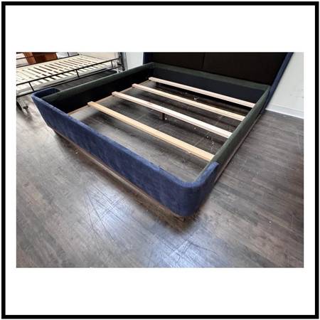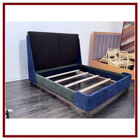 Eastern King Sapphire + Emerald Velvet Bed Frame, Custom. Original Price: $15,800