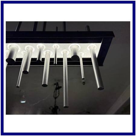 Design Plus Gallery presents the Cityscape LED Pendant from Hubbardton Forge. The handcrafted Cityscape seems to be floating in midair. The visual concept is meant to evoke the image of skyscraper silhouettes situated on the waterfront (an LED platform) and reflected off the water below. A wash of beautiful upanddown light graces this elegant fixture. This large pendant offers an amazing city view no matter where you live. Is in good condition for its usage with visible scratches to the top section. Made in the USA.