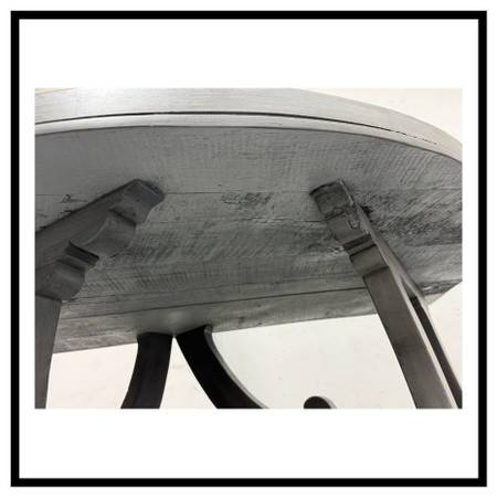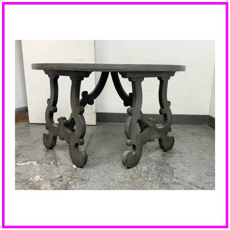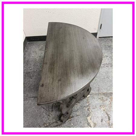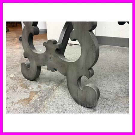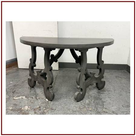 Design Plus Gallery presents a Magnificent DemiLune Table from the 1880s. The table has a nice gray paint over its solid wood. The surface is nothing out of the ordinary allowing the incredibly ornate legs to stand out. They are in the Spanish baroque style and has been painted over from its brown walnut. There is loss of paint to some areas of the surface but is in good functioning condition that is consistent with its antique age.