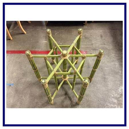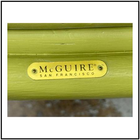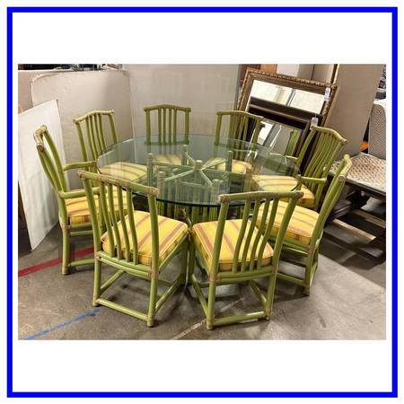 McGuire Furniture Pistachio Bamboo + Leather Dining Table + Set of Eight Chairs. Original Price: $21,800