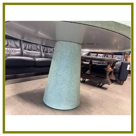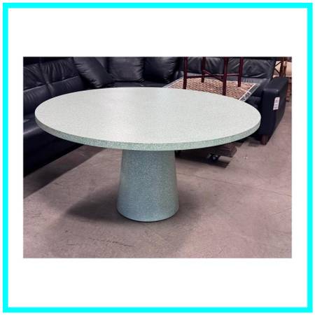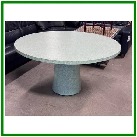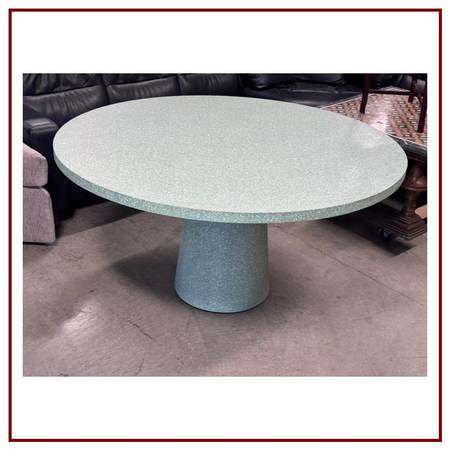 Design Plus Gallery presents a Dine Out 477 Table from Cassina. Designed by Rodolfo Dordoni. A refined outdoor dining table that distills Rodolfo Dordonis sophisticated vision into a sculptural, architectural form. Its frame is crafted in Agglomerate with a Terrazzo White and Green finish, a lively, speckled surface that lends depth and material richness while echoing classic stonework reimagined for contemporary living. Conical elements define the silhouette, introducing a rhythmic interplay of volumes that feels both substantial and elegantly light. The palettes fresh whites and nuanced greens pair effortlessly with natural textures and modern palettes alike, making it a versatile anchor for al fresco dining. Was a Showroom Sample, in good condition, visible and minimal wear. Made in Italy.
