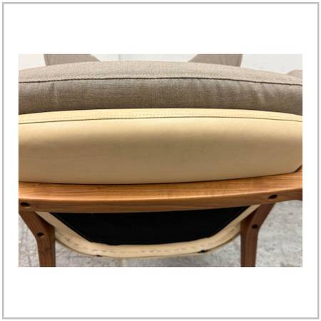 Design Plus Gallery presents a P22 Arm Chair from Cassina. Designed by Patrick Norgue in 2013. Reinterprets the classic bergre with a distinctly contemporary sensibility. It pays tribute to the timeless elegance of traditional wingback proportions while refining them with crisp, modern lines and inviting ergonomics. Crafted in Italy by Cassinarenowned for merging innovative technology with artisanal expertisethe P22 balances sculptural presence with exceptional comfort. A generously padded, winged shell envelops the sitter, encouraging relaxed posture and quiet retreat. The tactile richness of the Everest (CAT F) upholstery complements the warmth of an American Walnut base, creating a refined material dialogue that suits both modern and transitional interiors. Beneath its graceful profile lies meticulous engineering: a foam shell supported by a robust internal iron frame and an internal seat shell in molded beech plywood for enduring structure and support. Was a Showroom Sample, In good condition, visible and minimal wear. Made in Italy.