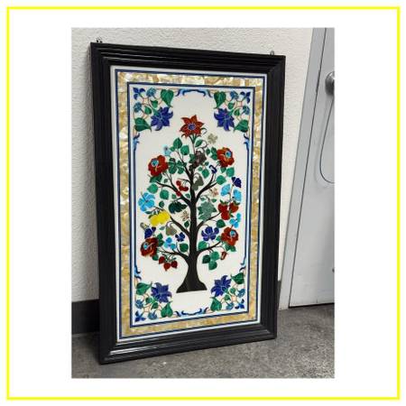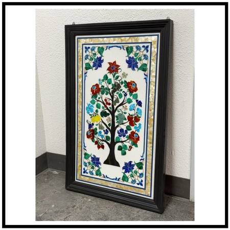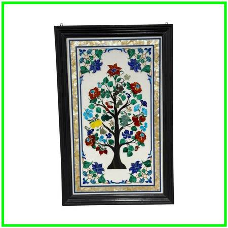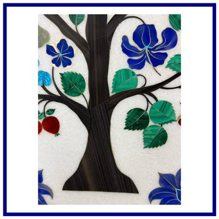 Pietra Dura Marble Inlay Panel of "Tree of Life", Framed