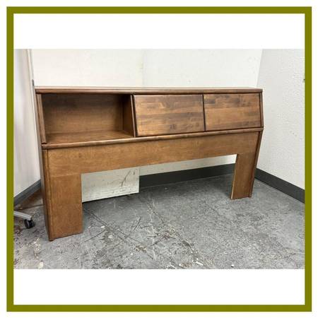 Design Plus Gallery presents a Queen Size Faribault Bookshelf Headboard. This piece of furniture is designed to perfectly fit a queen size bed, providing a stylish and practical addition to your bedroom. The headboard features a builtin bookshelf, offering ample space for storing your favorite books, decor pieces, or other small items. The rustic finish adds to its charm, lending a touch of wilderness to your rooms decor. The headboard is easy to install and clean, ensuring a hasslefree usage experience. With its elegant design and functionality, will transform your bedroom into a comfortable retreat. In good condition, visible and minimal wear from usage.
