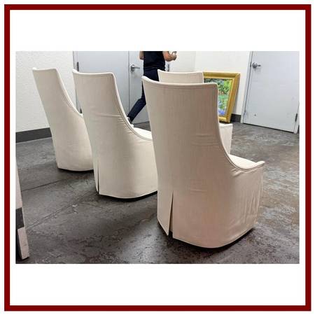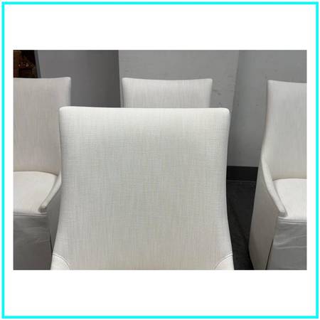 Restoration Hardware Ella Skirted Fabric Dining Side Chairs + Casters, Set of Four. Original Price: $4,260