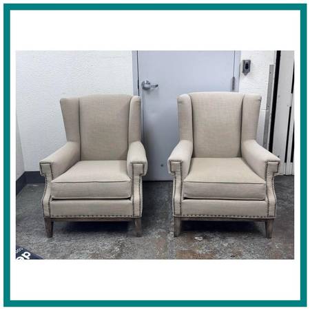 Sam Moore for Hooker Furniture Wingback Arm Chairs, Pair