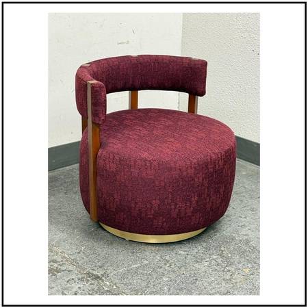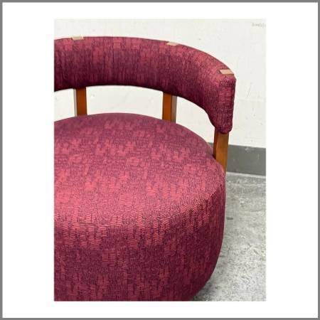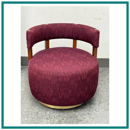 Village West Design Custom Made Swivel Club Chairs in Raspberry. Original Price: $7,225