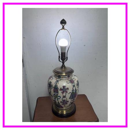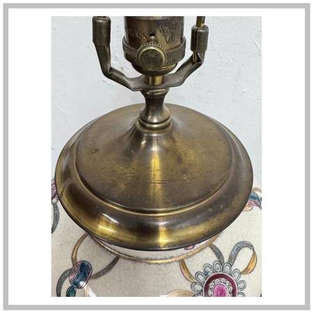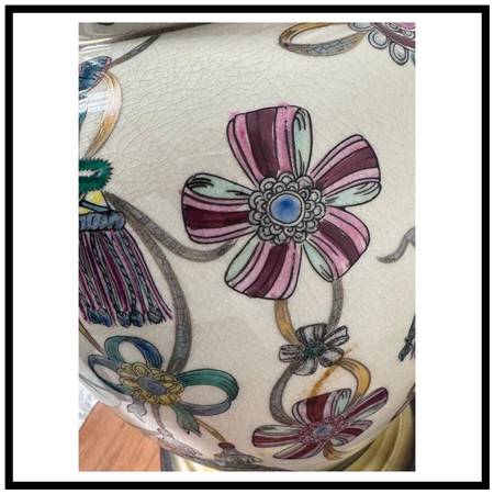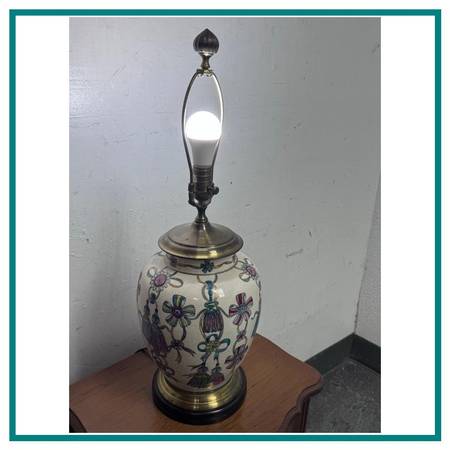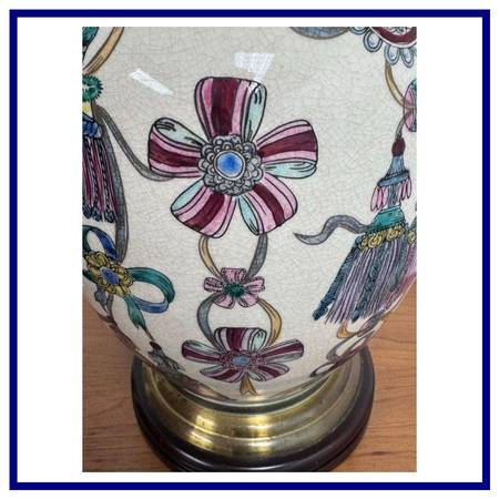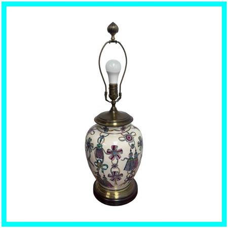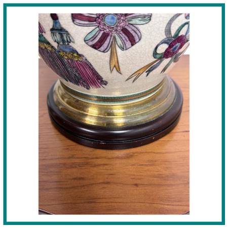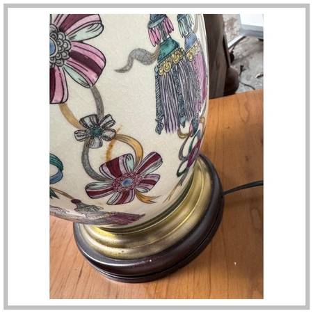 Design Plus Gallery presents a Vintage Hand Painted + Glazed Table Lamp from Wildwood Lampholder. Wildwood lamps began in 1900 as a retail furniture store in Rocky Mount, North Carolina, founded by W.A. Bulluck. The company transitioned into a lamp and lighting manufacturer when his grandson, Bill Kincheloe, took over in 1962 and developed customized lamps. By 1969, a small handcrafted line was created, and it grew into a nationally recognized brand that is now known for its handcrafted lighting, home accessories, and collaborations with artisans worldwide. This unique lamp has a white body with so many colorful bows that are tied in ways that make them also look like flowers. A celebratory lamp for a special person who likes one of a kind and well made items. It does not come with a lamp shade and is in good condition for its usage.
