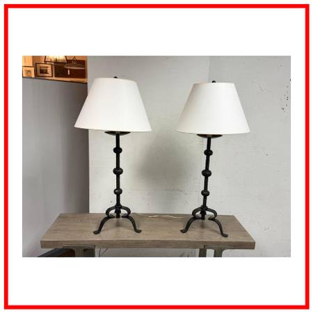Visual Comfort Bristol Aged Iron Table Lamps, Pair. Original Price: $1,500