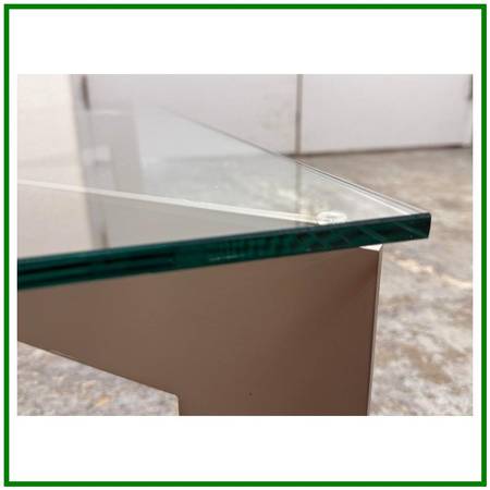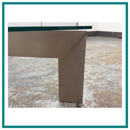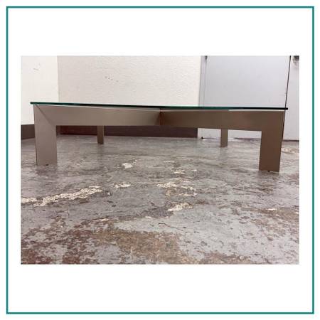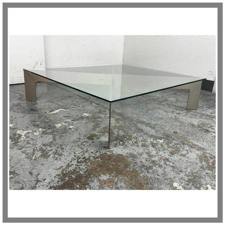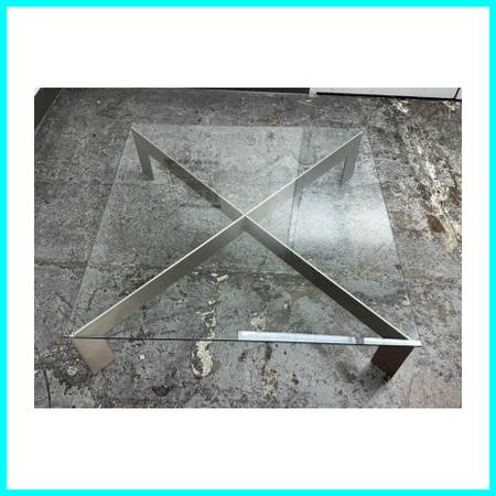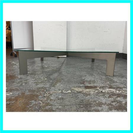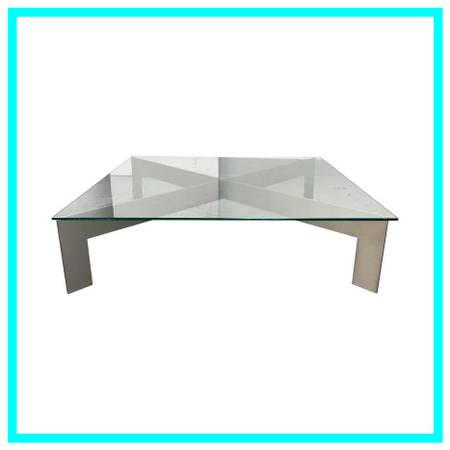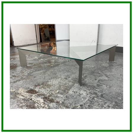 Design Plus Gallery presents the Boone Coffee Table from Yumanmod. The table offers a wide expanse of tempered glass that rests solidly on a criss cross frame of galvanized steel. The style is ultra modern and will have your items for display seemingly float with its minimalist appearance. It is in good condition for its usage. Made in the USA.