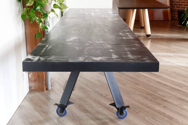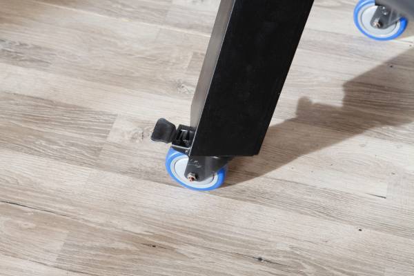 Steel legs on 4" locking casters.