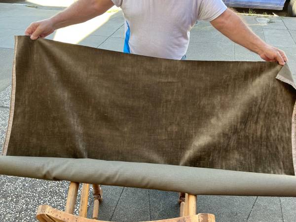 This chair frame is an authentic, rare 1930’s design. Owner bought 3 frames over 45 years ago and had upholstered 2 for his use. The frame which had been stripped and will need to be stained/ varnished, and the “new/old” stock mohair material, typical for the era and to be used for its upholstery, are being sold together. It is a very sturdy chair and comfortable to use, and material is like new.