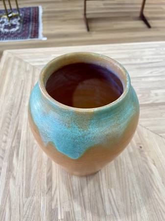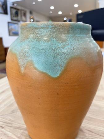 1930's Vintage Muncie Color Orange/Green VaseDrip Vase Measurements: 6”W x 2.5”H