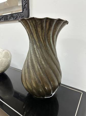 1950s Egidio Casagrande Italia Hammered Brass Vase Measurements: 13.75"H