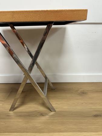 1960's chrome X legs Shagreen skin top Vintage condition Measurements: 23.5”W x 20”D x 25.5”H
