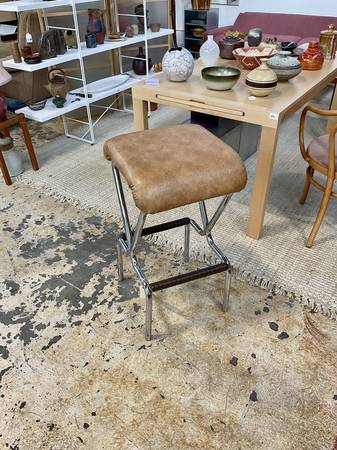 1970’s Daystrom Chrome & Leather Bar Stools Dimensions: 16”W x 17.5”D x 30.5”H