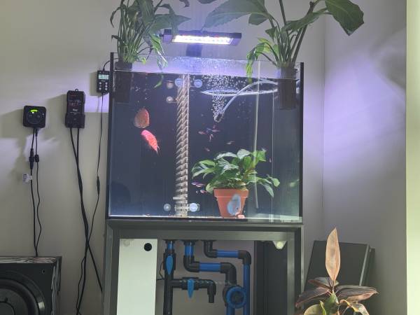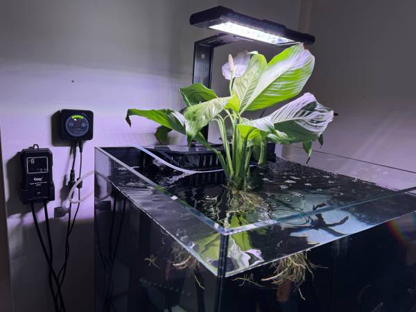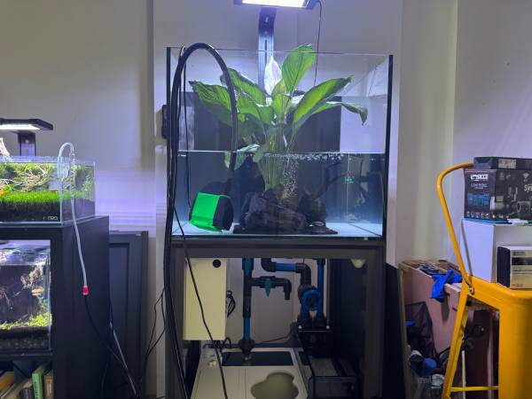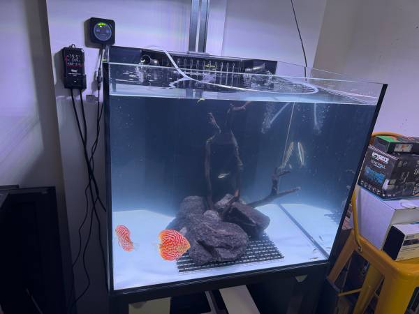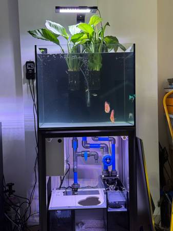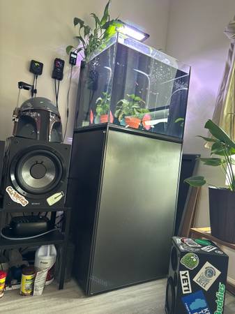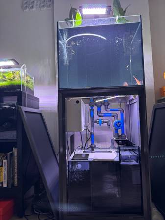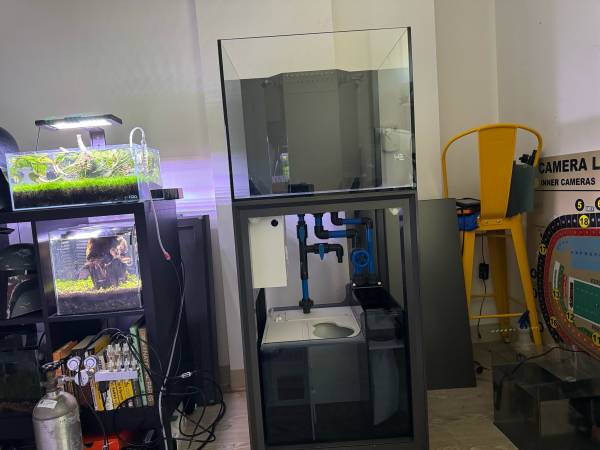 R60 STAND + SUMP INCLUDED signature UNS 45° mitered edges, black silicone and thicker, ultra-clear glass ensuring long term performance. The system includes a matching aluminum-framed stand with a built-in sump filtration system. The stand’s doors are magnetic and fully removable for easy device control and personalized customization. Designed to provide the right balance of functionality and aesthetic. Entire Sump system only Two years old.