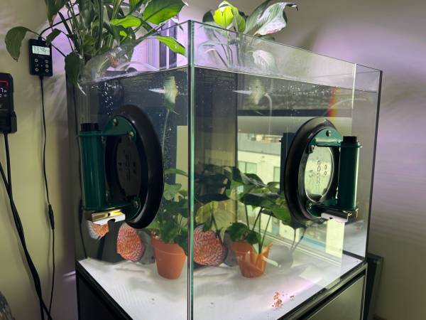 Assessors included: Two Water Pumps. Heater, Zuios 8” vacuum glass suction cups for adjusting and moving of glass tank, etc
