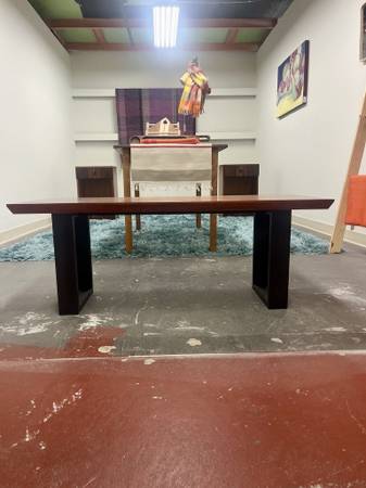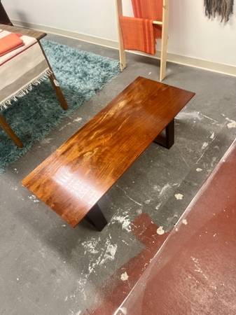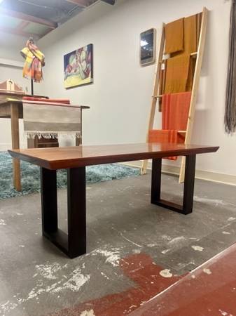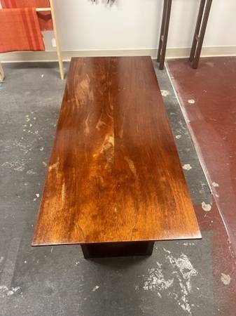 African Mahogany Coffee Table with angled side profile. On square, black base.