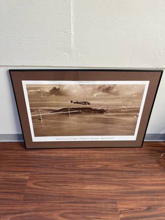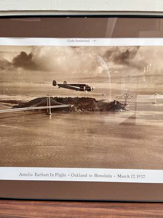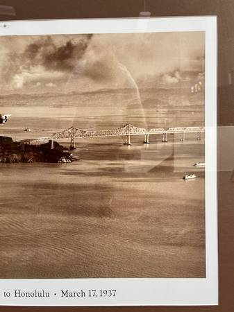 Amelia Earhart in Flight Framed Photograph Oakland to Honolulu, March 17, 1937. Dimensions: 44.25”W x 30.5”L