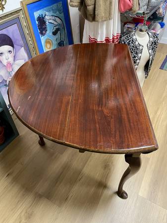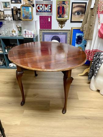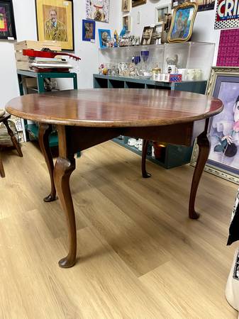 Antique Early 20th Century Solid Oak Oval Drop Leaf Table Dimensions: 48.75”W x 42.25”D x 28.5”H Ea. Leaf (x2): 16.5”W Leaves Dropped: 15.25”W x 42.25”D