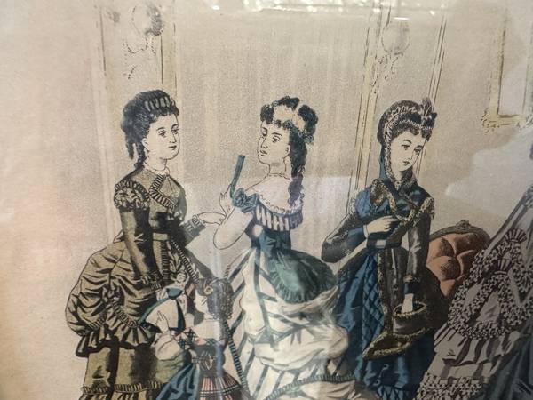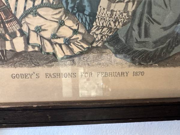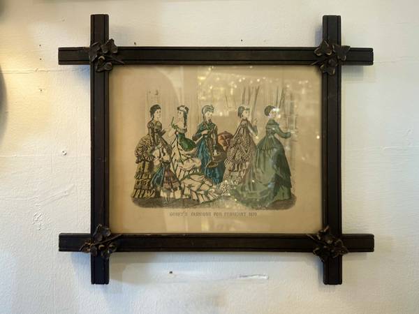 Antique Fashion Print in Antique Victorian Wood Frame, Godey's 1870 Measurements: 14.00”W x 12.00”L