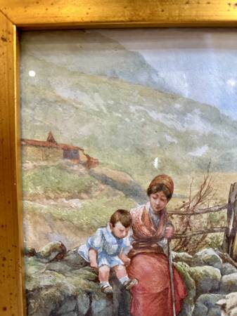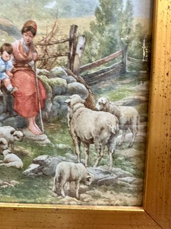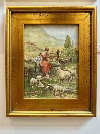Antique Watercolor Family with Sheep Dimensions: 9”W x 12”L