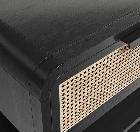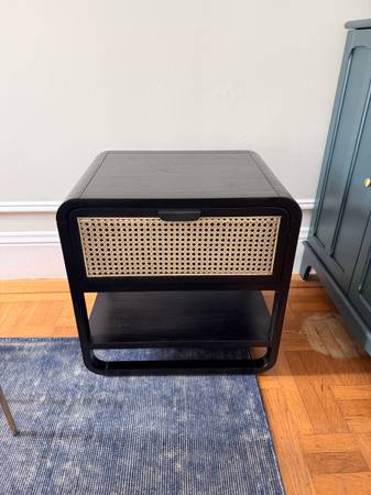 Hi there, selling an Anaise Cane Nightstand from Crate & Barrel. It’s hardly used, very well cared for, and in excellent condition. A great piece if you want that mid-century / boho vibe with natural cane and black trim.