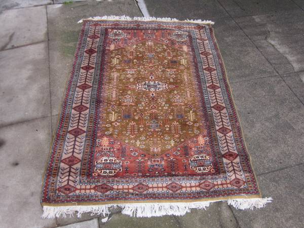 Rug is 6 feet 5 inches by 4 feet 2 and 1/2 inches. In excellent condition 100% wool and handmade
